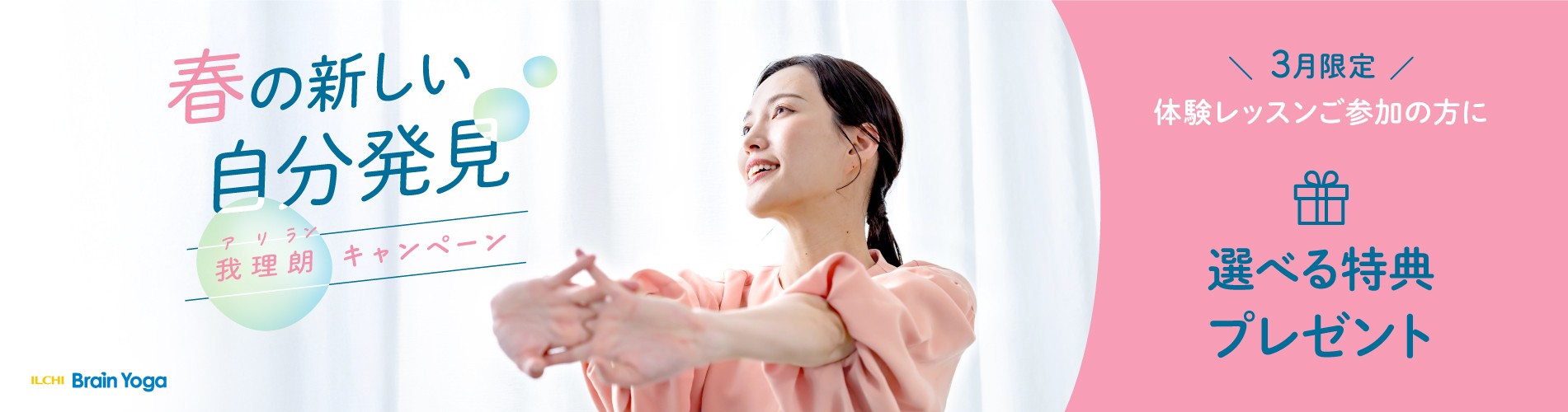 心のあたたかさが感じられる、イルチブレインヨガ大宮イルチブレインヨガ大宮スタジオの会員の皆様は、心が優しい方で溢れていて、入会後すぐの方にでも家族のようにあたたかく、お互いを励まし合う雰囲気があります。 20代~70代まで幅広い年代層の方がいらっしゃっていますが、60代以上の方は特に大変お元気で若々しいです。 お母さんと一緒に通っている小学生のお子さんは、トレーニングで集中力、体力、成績もUP↑しました。トレーニングを通じてお手伝いします!会員の皆様とそのご家族みんなが一緒に明るく楽しくトレーニングできるスタジオを目指しています。お一人おひとりが自分の無限な可能性に気づき、それを世の中で活かしていけるように、トレーニングを通してそのお手伝いができたらと願っています。インフォメーション 11月のおとくーポン インターネット限定!クーポン! ネット限定!体験レッスンクーポン 大宮スタジオが日本テレビ「ぶらり途中下車の旅」に紹介されます! インフォメーションリスト 開催予定のヨガイベントThere are no upcoming events at this time イベントカレンダー スタッフブログ健康的なセルフイメージを持とうこんにちは。急に寒くなってきましたね。 毎日頑張っている皆様に、希望の手紙を贈り ...続きを読む 2023年11月14日 / ブログ【保存版】運動・筋トレ前に行いたい、膝のストレッチ|お勧めひざ痛解消ヒーリング法こんにちは^ ^ イルチブレインヨガ大宮スタジオです。 スクワットや下半身の筋ト ...続きを読む 2022年10月7日 / ブログ, ヨガ大宮、大宮ヨガ、脳、腸、ダイエット、運動不足解消、体質改善、ストレス緩和、集中力アップ驚くほど細くなる!?二の腕痩せルーティンこんにちは。 イルチブレインヨガ大宮です! 今日はダイエットしているかたに嬉しい ...続きを読む 2022年9月20日 / ブログ, ヨガ大宮、大宮ヨガ、脳、腸、ダイエット、運動不足解消、体質改善、ストレス緩和、集中力アップ20代の若さを取り戻す奇跡の骨盤矯正運動こんにちは! 今日は、脚の長さでわかる骨盤のバランスチェックをご紹介します。 き ...続きを読む 2022年8月17日 / #骨盤矯正 #骨盤ストレッチ #骨盤歪みチェック, ブログ映画「LOVE HEALS」オンライン ワークショップのお知らせイルチブレインヨガ主催 映画「LOVE HEALS」オンライン ワークショップの ...続きを読む 2022年6月3日 / 腸活性背中をほぐすブレイン体操こんばんは!今日は 背中をほぐすブレイン体操 をご紹介致します。 ❣️体験レッス ...続きを読む 2022年4月21日 / ブログ 記事一覧 体験レッスンでお待ちしています健康の秘訣は、自然と調和することです。 わたしたち現代人の生活は、「自然」のリズムから離れてしまっています。 イルチブレインヨガのレッスンは自然と調和する「健康の原理」に基づいた、簡単な体操、呼吸法、瞑想で構成されています。 人間本来の自然なリズムへ戻りましょう。 「シンプルだけど奥が深い」イルチブレインヨガを体験してみませんか? お越しいただく方お一人お一人のコンディションにあわせてご案内させていただきます。 皆様のお越しを心からお待ちしています。 イルチブレインヨガ大宮スタジオ 森川 佳美 体験レッスン予約 FacebookXBlueskyHatenaCopy